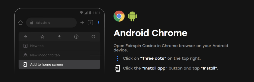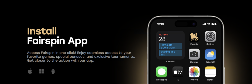 - Web Version: If you don’t wish to install a shortcut, you can reach the Fairspin mobile version directly through your browser.